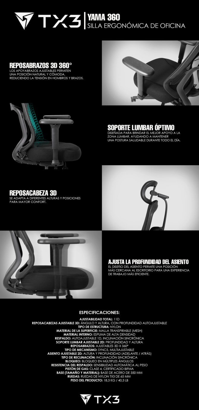 Sillas, ThunderX3, 3D, Moldeo / Látex, Si, Si, Hasta 125kg, Acero, En el respaldar