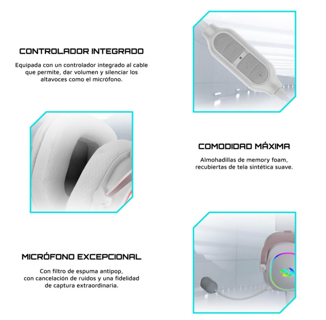 Tipo de copa: Circumaurales (este tipo de auriculares se coloca rodeando completamente la oreja). Almohadillas de tela suave con memory foam.