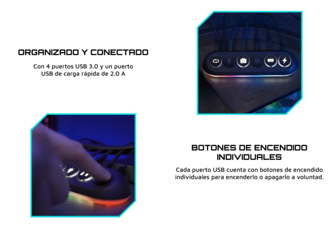 Efecto de iluminación: Sí, luz RGB en la parte inferior.