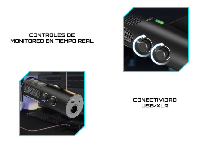 Conexión de salida: USB tipo C (extremo del micrófono) a tipo A 2.0 (extremo de la computadora)