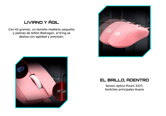 Peso: Ligero y ágil con solo 42 gramos, ideal para movimientos rápidos y precisos.