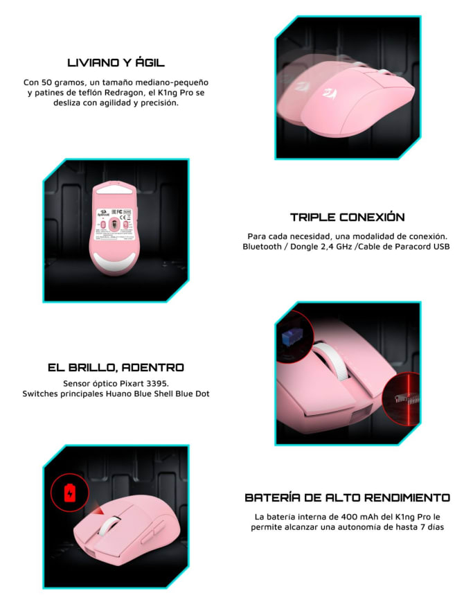 Sensor: Óptico Pixart PMW3395 para un seguimiento preciso en cualquier superficie.