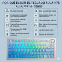 Cableada, Dongle 2.4, Bluetooth, Mecánico, Regular, Gasket, Personalizado, 87%, Inglés, Aula, RGB, Blanco, Si, 10000mAh, 8000 Hz, Si