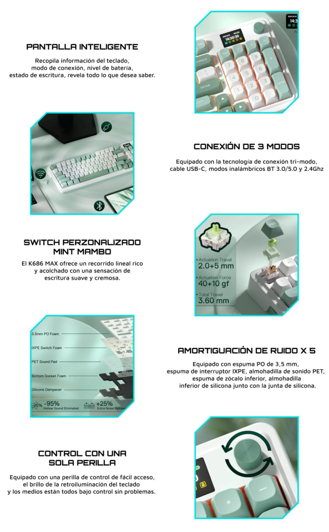 Conectividad: 2.4 GHz, Bluetooth y USB-C con cable.