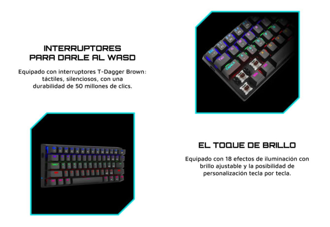 Extras: 4 switches intercambiables, Keycaps de inyección de doble disparo y grabadas con láser