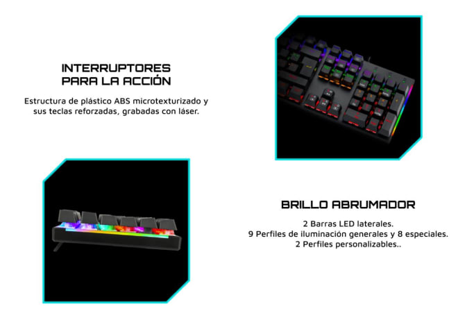 Retroiluminado: sí, teclas Rainbow, barras LED laterales RGB.